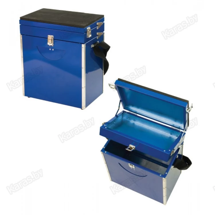 Классический материал для зимних ящиков - алюминий. Благодаря чему вес у них меньше, чем у оцинкованных. Имеет усиленные углы, которые не дают влаге попадать внутрь. В крышке ящика имеется отделение для рыболовных снастей, нижняя часть ящика предназначена для транспортировки улова и имеет специальное окошко для рыбы. Удобный регулируемый наплечный ремень.