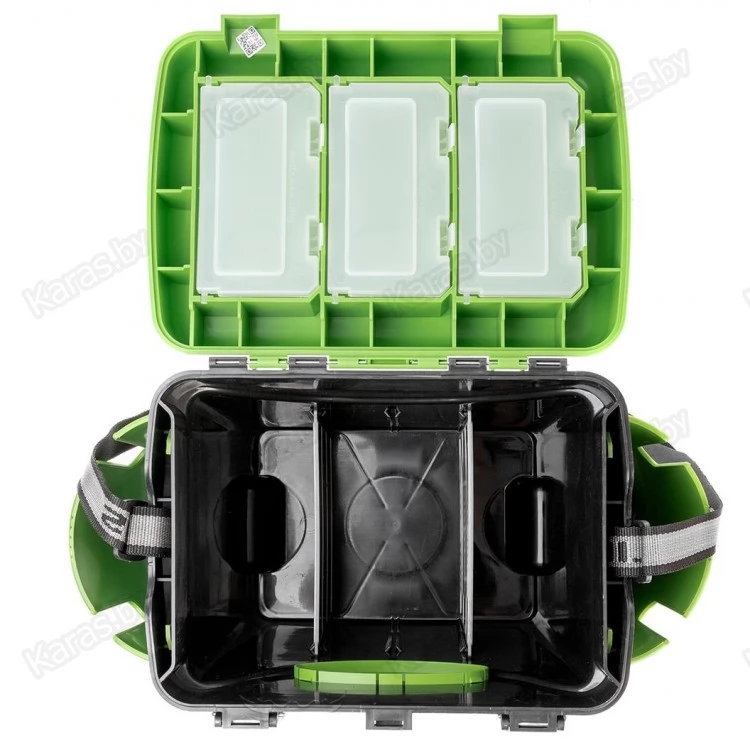 Функциональное основное отделение служит своеобразным каркасом, предотвращающим прогибы ящика и надежно удерживающим вес рыбака. Объем основного отделения (10 литров) позволяет разместить все необходимое: термос, еду, снасти. Съемные перегородки предназначены для более удобного хранения принадлежностей.