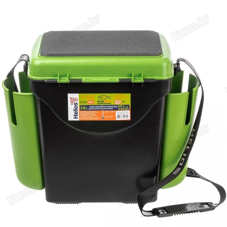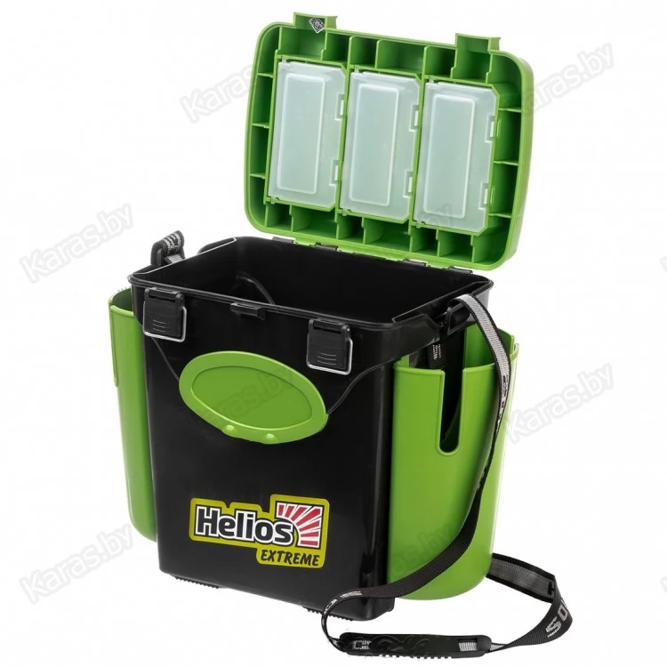 В конструкции ящиков рыболовных FISHBOX торговой марки Helios предусмотрено все, что создает рыболову комфортные условия ловли. Оптимальная форма и размер. Размер (длина - 432мм (с учетом навесных карманов) и 310 мм (без навесных карманов), высота - 344,5 мм, ширина - 230 мм) и пропорции ящиков специально рассчитаны таким образом, чтобы обеспечивать хорошую устойчивость, легкость в использовании, удобство при переноске. В положении сидя любой человек будет чувствовать себя комфортно.