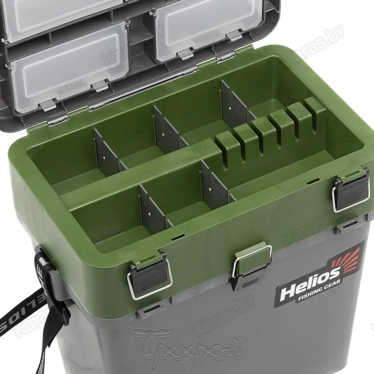 Ящик рыболовный зимний двухсекционный торговой марки Helios, изготовленный из ударопрочного, морозостойкого и в то же время легкого пластика, обеспечивает надежное хранение и транспортировку рыболовных снастей. Благодаря объему 19 литров, ящик вместит очень много полезных снастей для рыбалки.