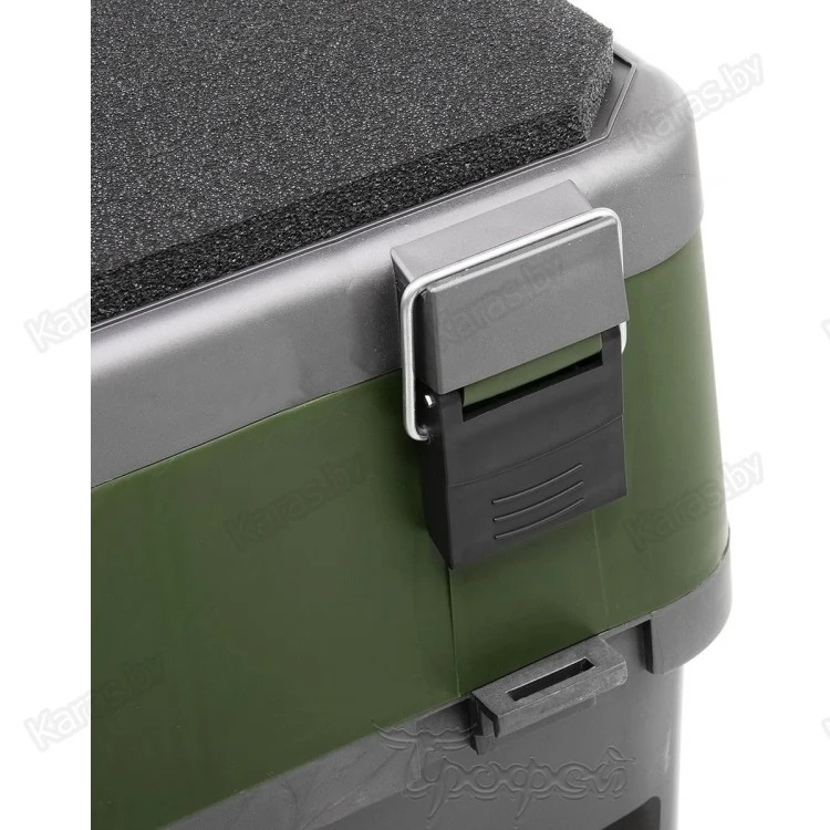 Мягкое незамерзающее сиденье на крышке ящика, аккумулирующее тепло, позволит рыболову комфортно рыбачить с ящика долгое время.
