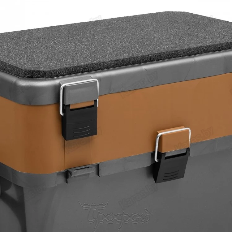 Мягкое незамерзающее сиденье на крышке ящика, аккумулирующее тепло, позволит рыболову комфортно рыбачить с ящика долгое время.