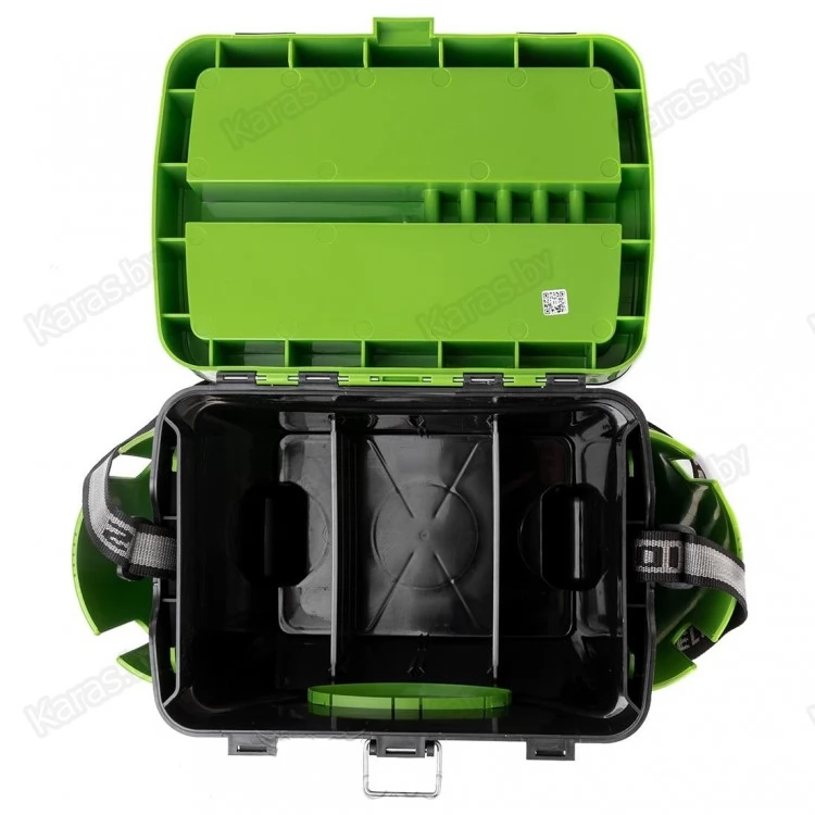 Функциональное основное отделение служит своеобразным каркасом, предотвращающим прогибы ящика и надежно удерживающим вес рыбака. Объем основного отделения (10 литров) позволяет разместить все необходимое: термос, еду, снасти. Съемные перегородки предназначены для более удобного хранения принадлежностей.