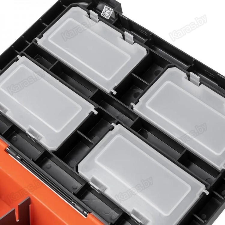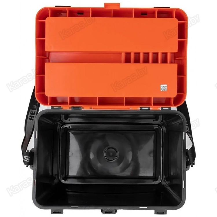Вплавляемый этикет (IML Label) обладает хорошей устойчивостью к высоким и низким температурам, без проблем переносит контакт с водой, устойчив к истиранию и прочим механическим повреждениям. Благодаря объему 19 литров, ящик вместит очень много полезных снастей для рыбалки. Дополнительная проставка с 2 отсеками и съемными перегородками позволяет разместить небольшие удочки и другие снасти.