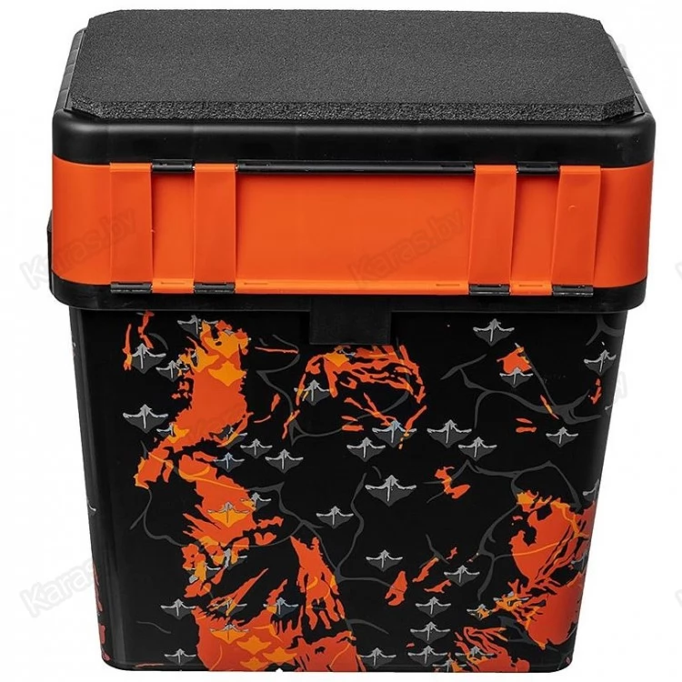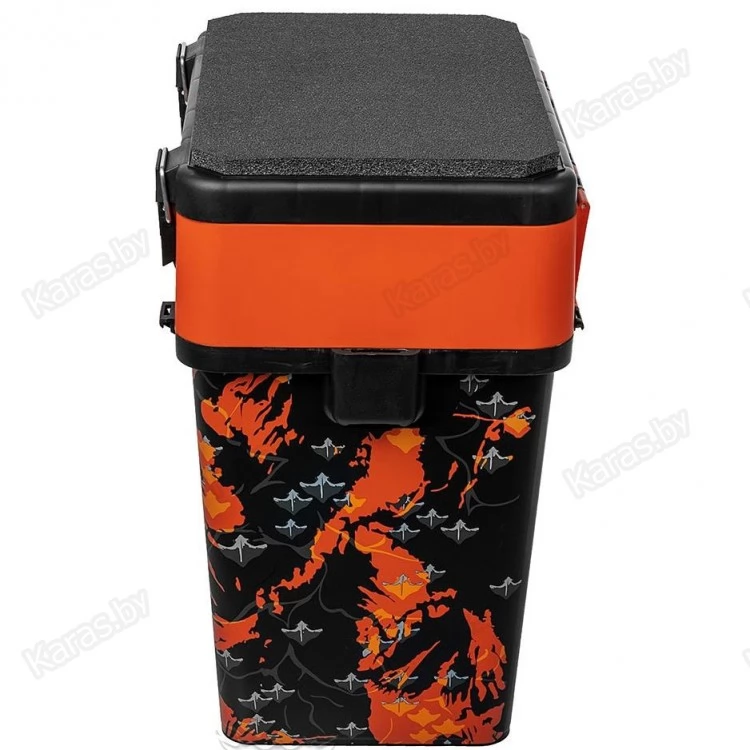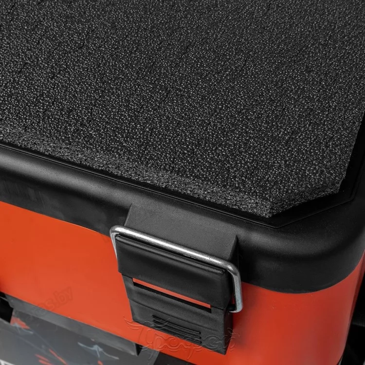Мягкое незамерзающее сиденье на крышке ящика, аккумулирующее тепло, позволит рыболову комфортно рыбачить с ящика долгое время.