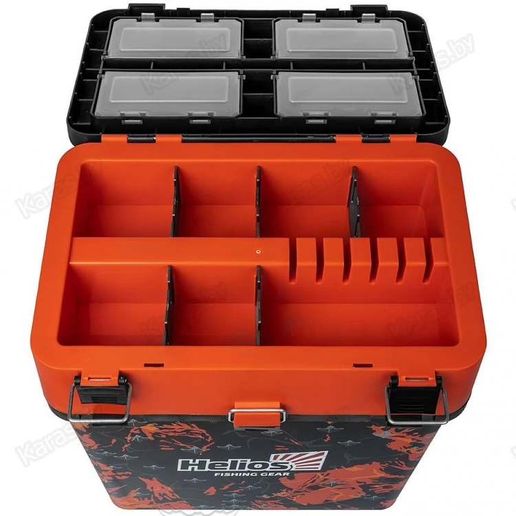 Ящик зимний рыболовный торговой марки Helios, изготовленный из ударопрочного, морозостойкого и в то же время легкого пластика, обеспечивает надежное хранение и транспортировку рыболовных снастей.