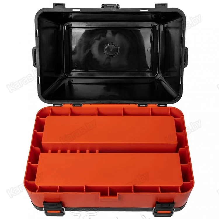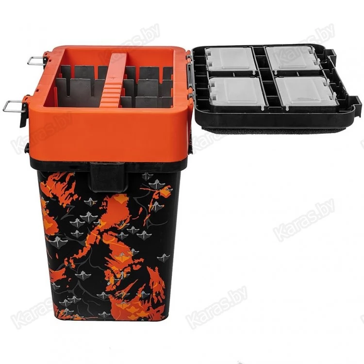 Благодаря объему 19 литров, ящик вместит очень много полезных снастей для рыбалки. Дополнительная проставка с 2 отсеками и съемными перегородками позволяет разместить небольшие удочки и другие снасти.