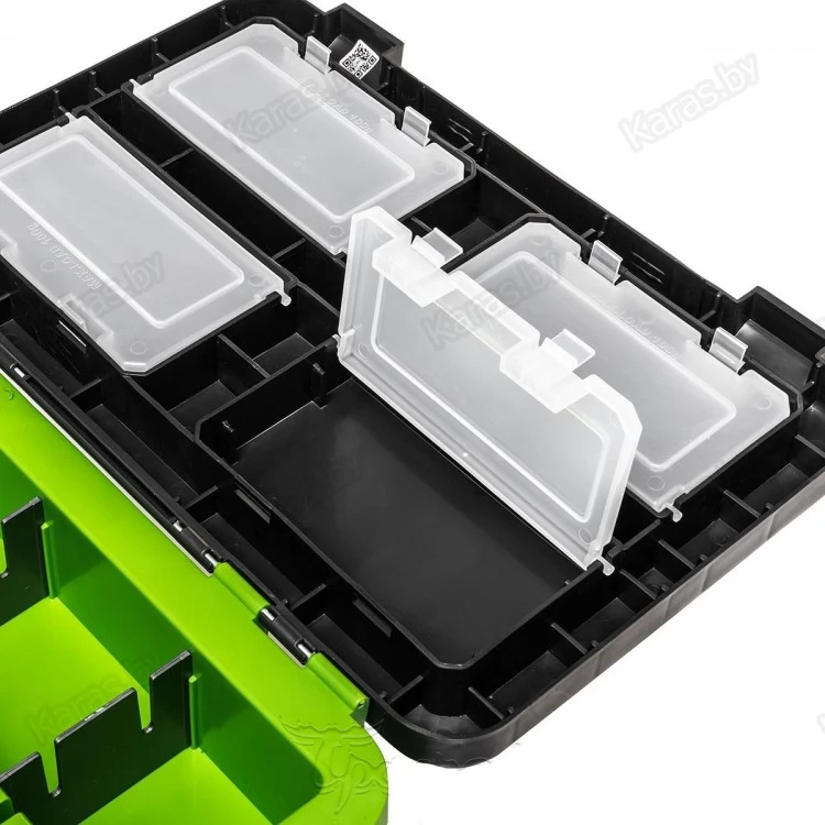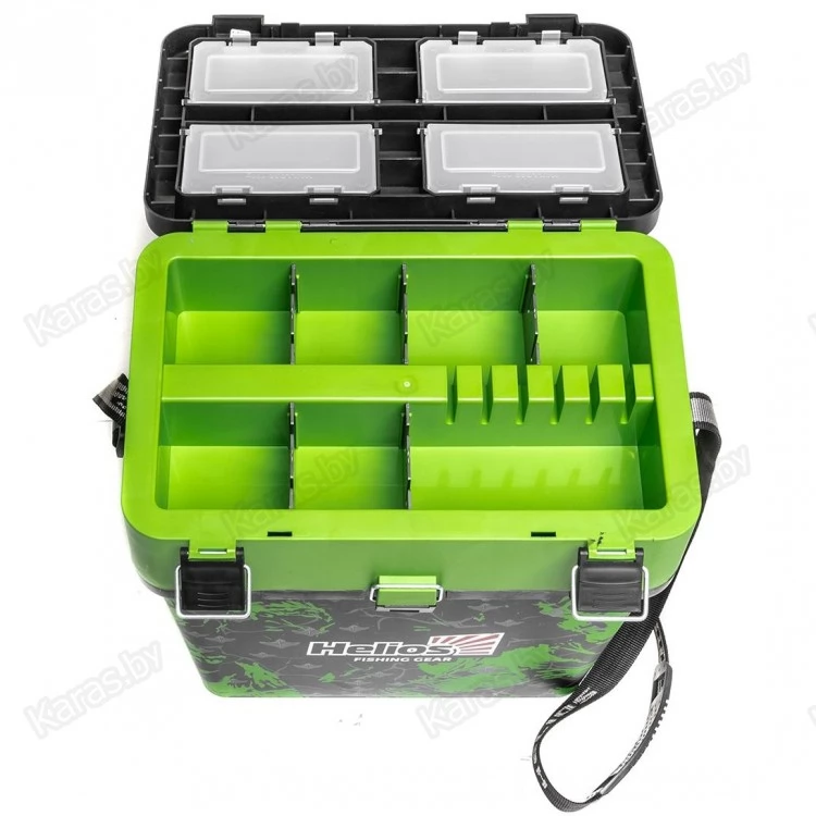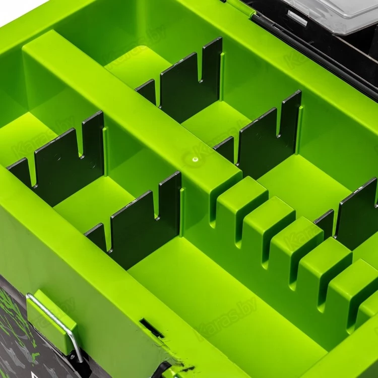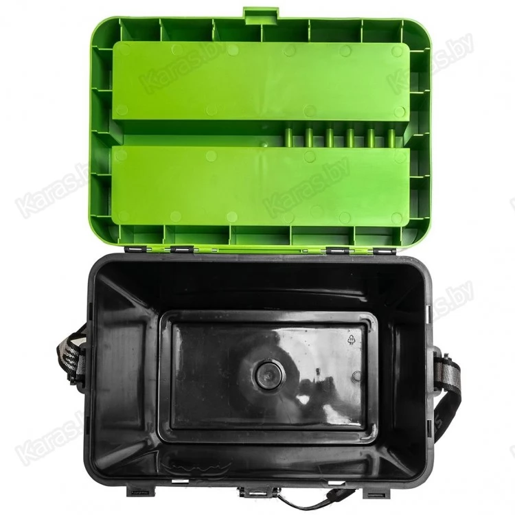 Благодаря объему 19 литров, ящик вместит очень много полезных снастей для рыбалки. Дополнительная проставка с 2 отсеками и съемными перегородками позволяет разместить небольшие удочки и другие снасти.