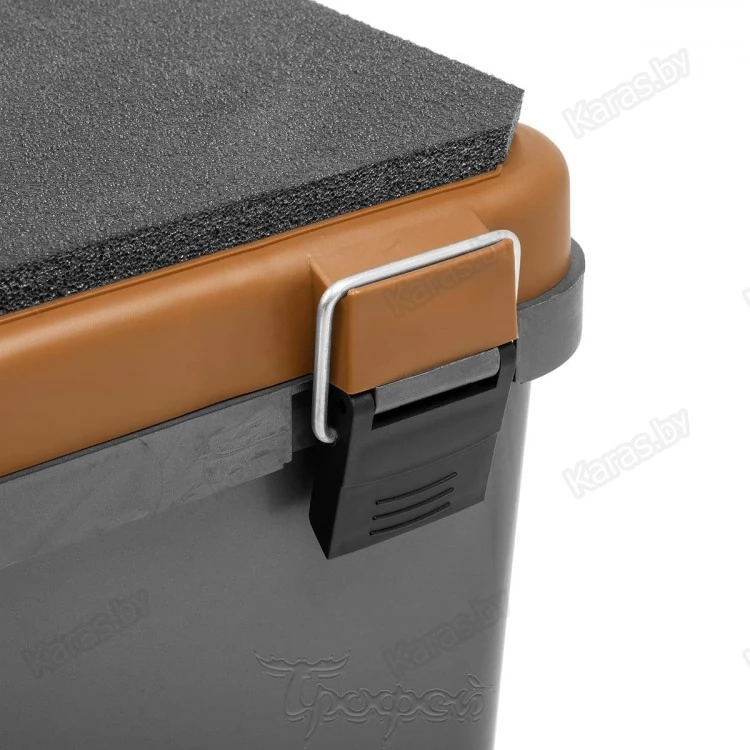Мягкое незамерзающее сиденье на крышке ящика, аккумулирующее тепло, позволит рыболову комфортно рыбачить с ящика долгое время.