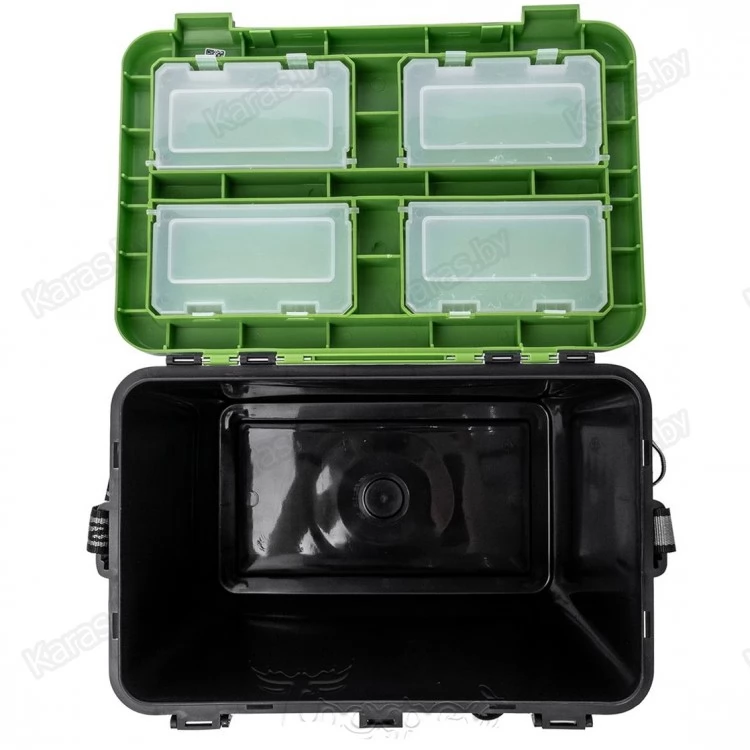 Благодаря объему 19 литров, ящик вместит очень много полезных снастей для рыбалки.