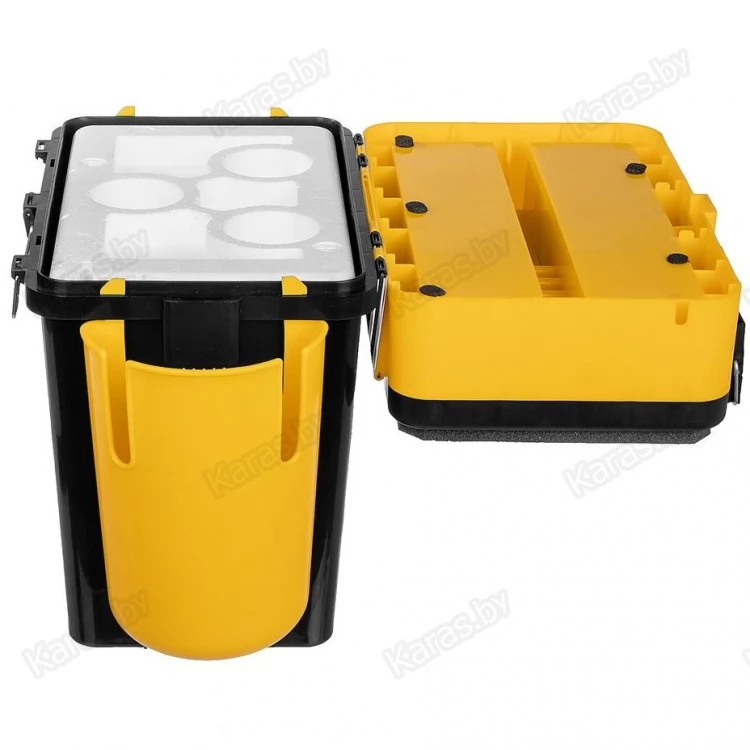 Оптимальная форма и габаритные размеры ящика специально рассчитаны таким образом, чтобы обеспечивать хорошую устойчивость и удобство в переноске. Высота ящика (39,5см) позволяет рыболову использовать ящик в качестве комфортного стула. На крышке изделия размещено сиденье из изолона, которая благодаря теплоизолирующим свойствам материала, защищает от холода и влаги.