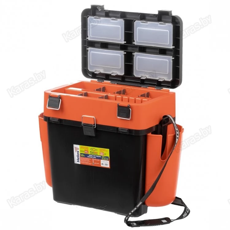 В конструкции ящиков рыболовных FISHBOX торговой марки Helios предусмотрено все, что создает рыболову комфортные условия ловли. Оптимальная форма и размер. Размер (длина - 500 мм (с учетом навесных карманов) и 380 мм (без навесных карманов), высота - 395 мм, ширина - 255 мм) и пропорции ящиков специально рассчитаны таким образом, чтобы обеспечивать хорошую устойчивость, легкость в использовании, удобство при переноске. В положении сидя любой человек будет чувствовать себя комфортно.