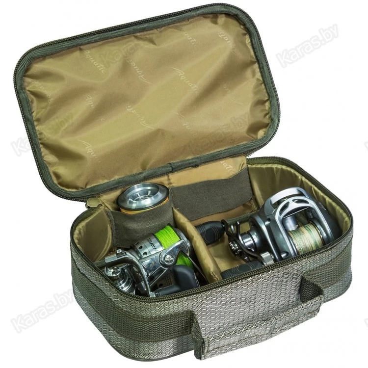Полужесткий чехол Aquatic Ч-04 для хранения и транспортировки 2 рыболовных катушек с запасными шпулями. Подходит для многих моделей эхолота и других вещей, требующих дополнительной защиты. Изготовлен из водонепроницаемого материала. Чехол имеет застежку на молнии и карман из сетки.