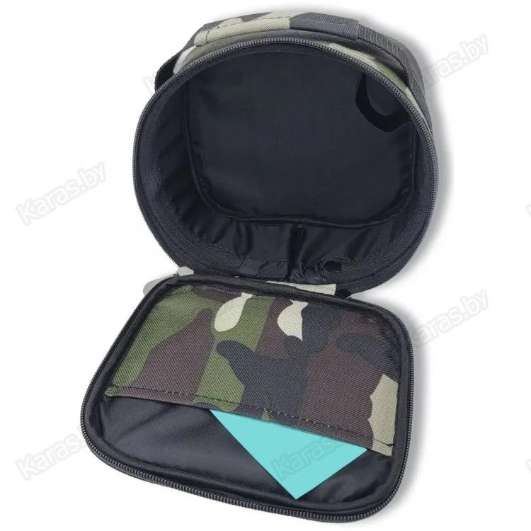Сумка для катушки – кофр предназначена для хранения и транспортировки одной катушки. Для изготовления чехла использована синтетическая ткань Oxford 600D, непромокаемая, отличной прочности, которая отлично чистится и стирается при надобности. Жесткий каркас сумки имеет плотную вставку придающую форму изделию и предохраняющую содержимое от повреждения. Крышка коробки оснащена внутренним карманом. Внутри в верхней части расположен дополнительный карман. Можно использовать и для хранения кормушек или других рыболовных аксессуаров.