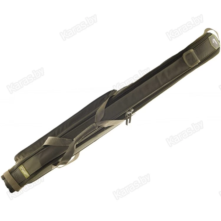 Снаружи расположен длинный карман для подсака или стоек и объемный карман на молнии для аксессуаров. В чехол помещается до 5 удилищ с катушками. Внутренняя часть выполнена из мягкого ворсистого материала на который крепятся специальные подушки для катушек.