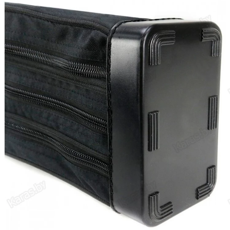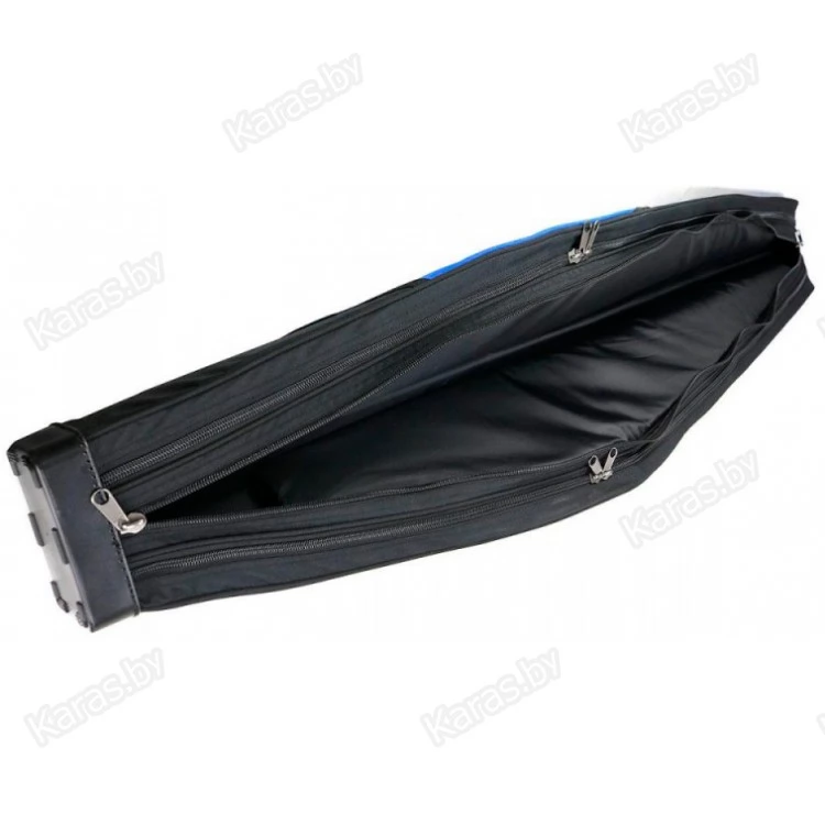 Роскошный полужёсткий чехол длиной 160 см, предназначенный для размещения трех оснащённых удилищ. Бланки удилищ и катушки размещены в отдельных отделениях (камерах) обитых мягким материалом, так что удилища не касаются друг друга, и каждая камера закрывается своей высококачественной двусторонней молнией. Нижняя часть корпуса также усилена твердым и прочным пластиком, так что вы можете спокойно ставить кофр на землю, так как он не будет поврежден и, если испачкается, легко может быть очищен или отмыт. Чехол, конечно же, оснащён ручками для переноски в руке или с помощью прочного и мягкого плечевого ремня.