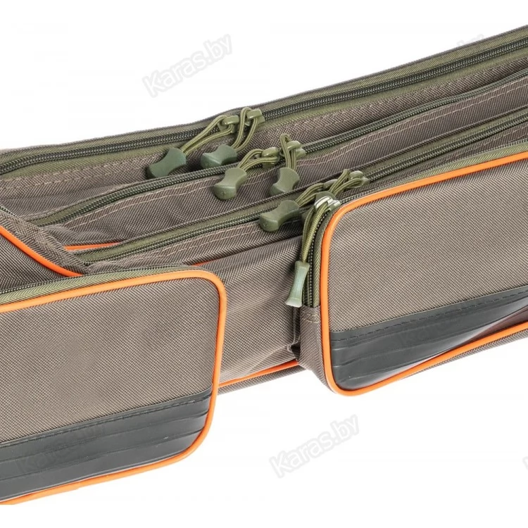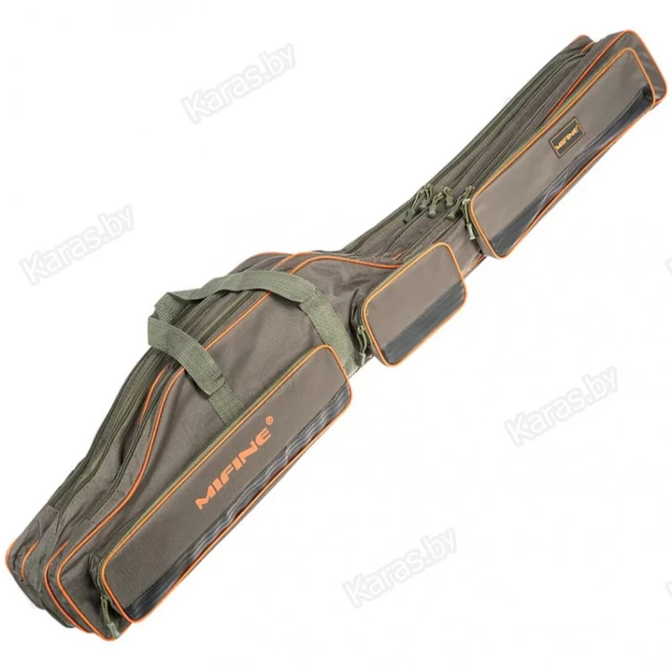 Незаменимая вещь для хранения, переноски и перевозки удилищ. Недорогой, лёгкий чехол, защитит Ваши снасти от повреждений и поломок, а Вас, от излишних переживаний. Изготовлен из прочных синтетических материалов, и застегивается на молнии. Чехол состоит из трёх изолированных отсеков, рассчитанных на размещение удилищ с установленными катушками, что очень удобно. Сбоку имеется 3 накладных кармана для сопутствующих аксессуаров. А для облегчения переноски, есть две ручки и наплечный ремень.