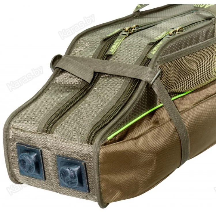 Данная модель мягкого чехла для удилищ состоит из двух изолированных отделений. Конструкция позволяет произвести утяжку удилищ для более безопасного хранения и транспортировки, а также имеет множество карманов для принадлежностей. Выполнен из качественных нейлоновых материалов.