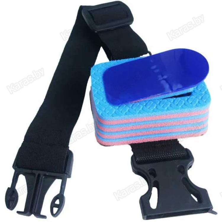 К ноге крепится эластичным ремнем с удобным замком, есть возможность регулировки длины крепления.