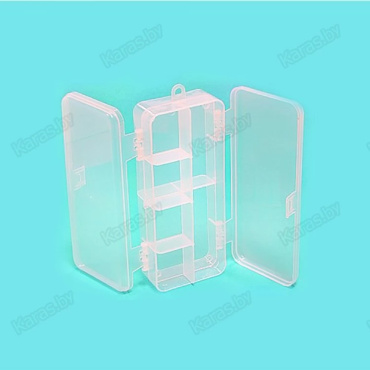 Двусторонняя коробка с отсеками для хранения рыболовных мелочей.