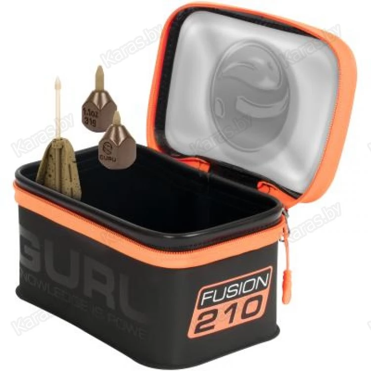 Guru Fusion — серия специализированных, водостойких сумок и боксов от британского производителя, разработанная для хранения фидерной оснастки и других аксессуаров. Сумки изготавливаются из композиционного полимерного материала EVA толщиной 0,8 мм, который не пропускает влагу и легко моется. Сумка закрывается на водостойкую молнию. Верхняя часть сумки прозрачная и позволяет видеть ее содержимое.