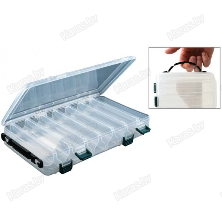 Двухсторонняя коробка для бережного хранения воблеров от Akara, предназначена для перевозки различных видов рыболовных приманок. Довольно часто, при транспортировке, воблеры трутся друг об друга или об другую снасть. В результате, облазит краска, могут появляться вмятины и царапины. В предложенной коробке, воблеры можно хранить с двух сторон. Ячеек достаточно много, приманки лежат отдельно, как винтовка в чемодане. Секции коробки имеют продолговатую вытянутую форму. Материал – прозрачный износостойкий пластик. Сверху гибкая ручка. Идеально ложиться в руку и багажник автомобиля и всегда наготове.