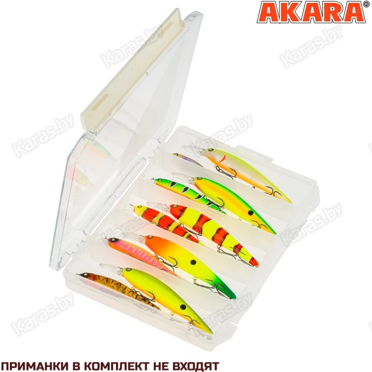 Универсальная коробка для приманок порадует любителей спиннинговой ловли своей компактностью и удобством. Коробка изготовлена из прозрачного пластика.