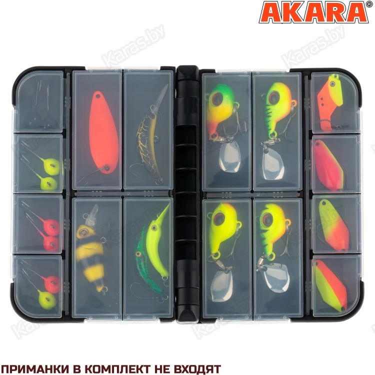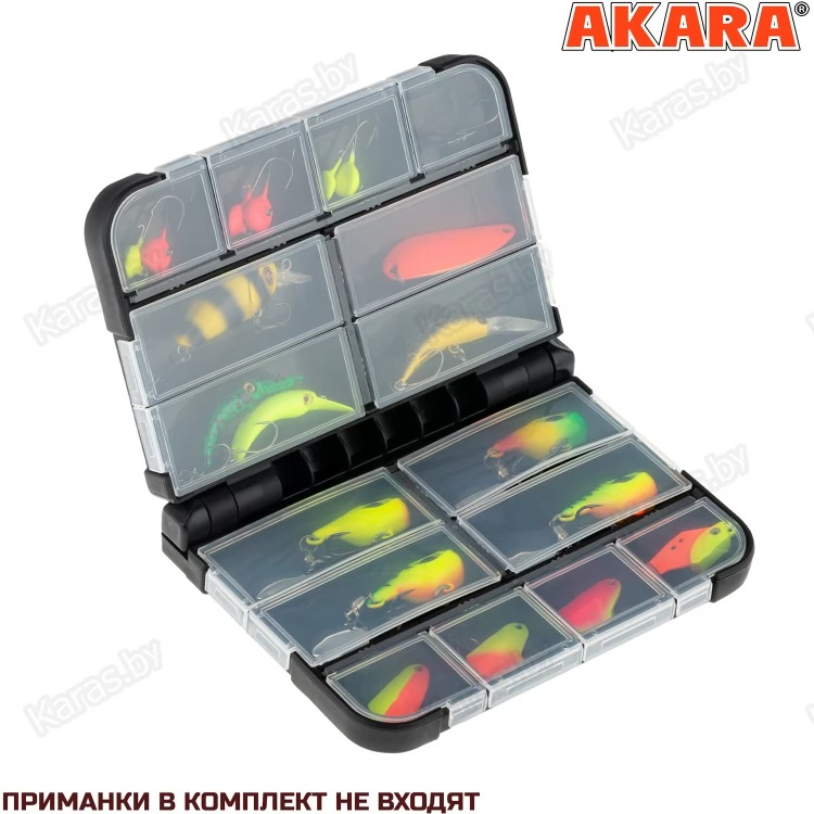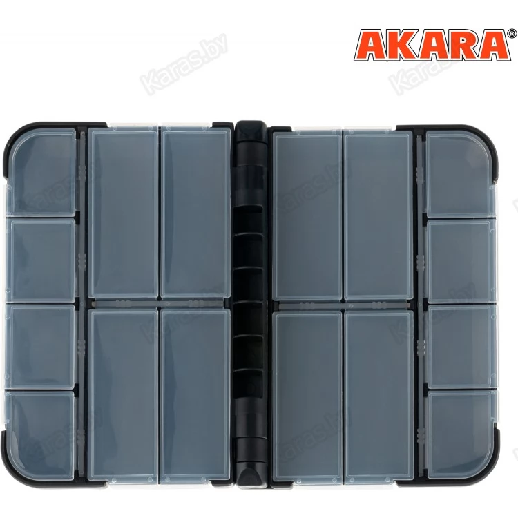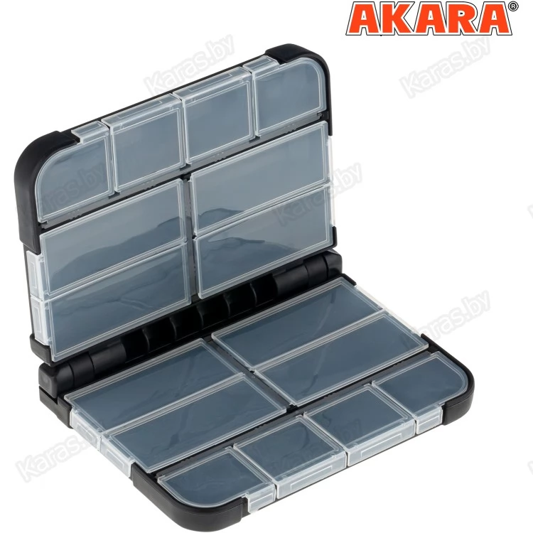 Очень стильная, практичная, удобная и функциональная коробочка, которая просто обязана быть у каждого уважающего себя спиннингиста!!! Корпус и соединительные механизмы выполнены из ударопрочного пластика. Коробочка оснащена долговечным встроенным пружинным механизмом, который делает открывание и закрывание максимально надежным. Внутри коробки располагаются по 8 отсеков разного размера на каждой стороне. Крышки отсеков сделаны из прочного прозрачного пластика, что позволяет осуществлять визуальный контроль над содержимым ячеек. Все отсеки закрываются очень плотно, благодаря чему предотвращается выпадание содержимого наружу.