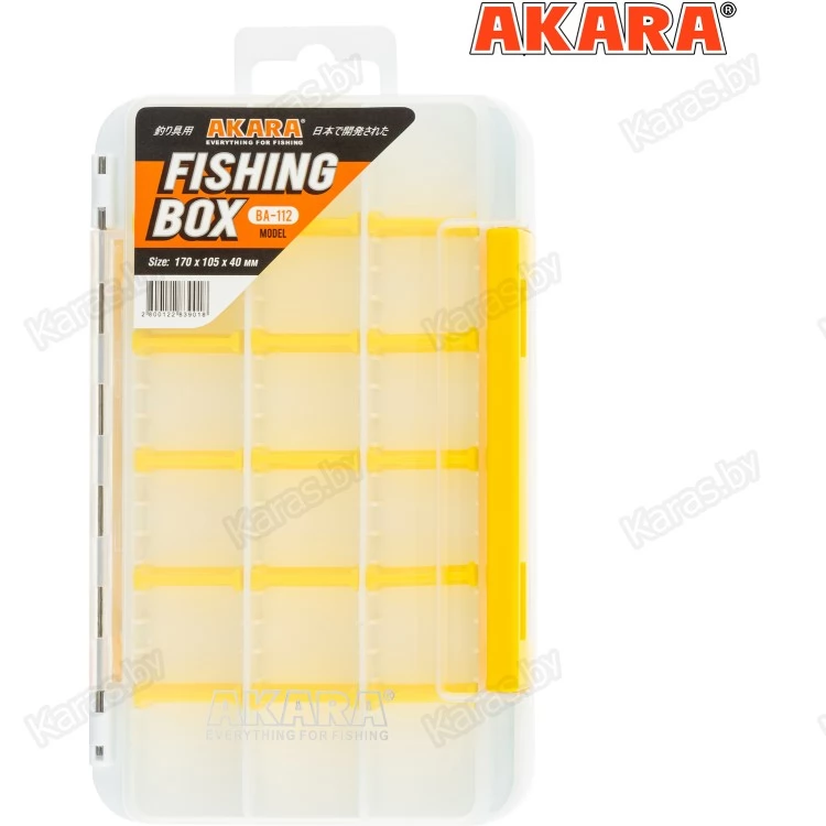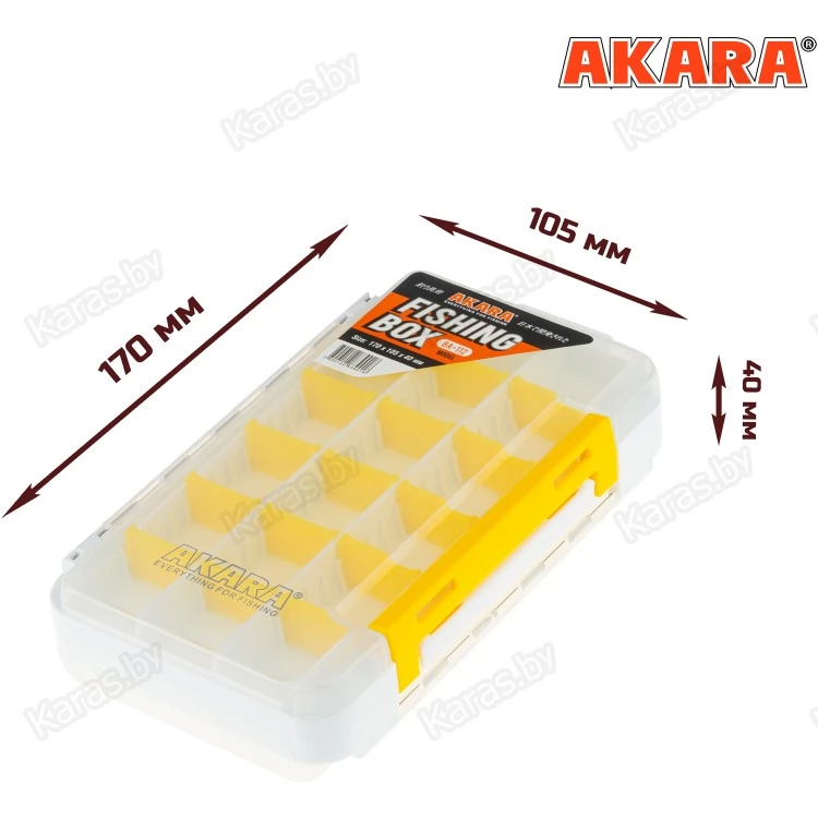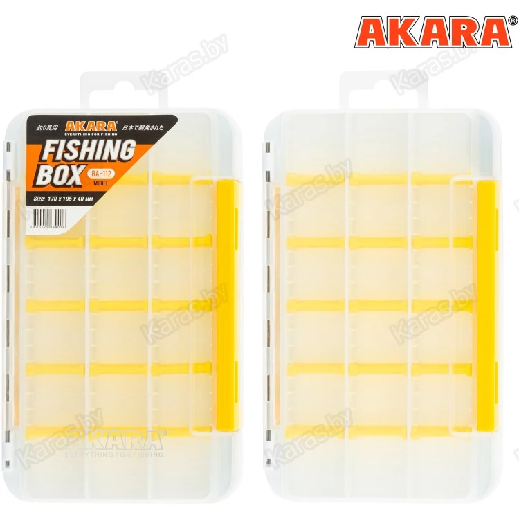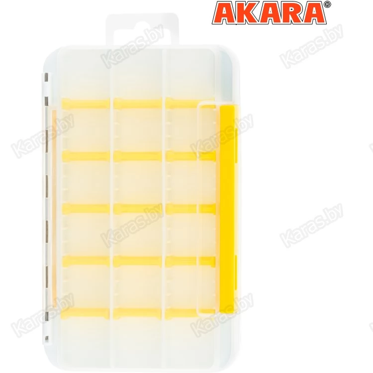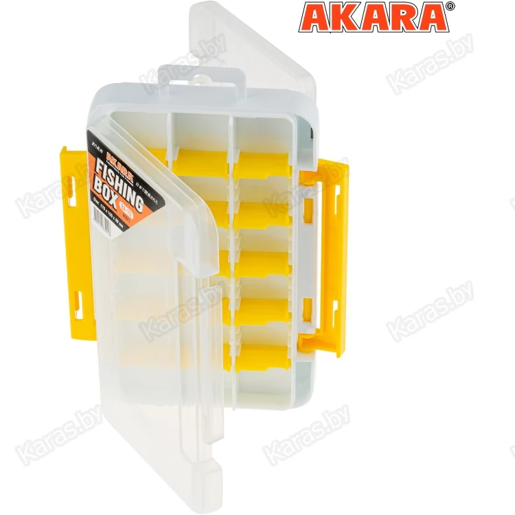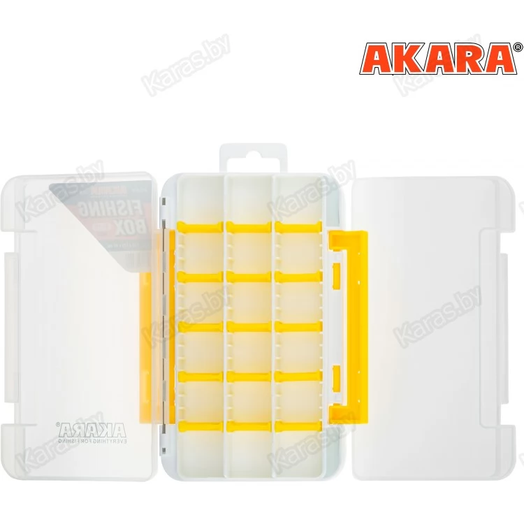 Двухсторонняя коробка порадует любителей спиннинговой ловли своей компактностью и удобством. С обеих сторон расположены ячейки, в которых можно хранить приманки, крючки, оснастки и т.д. Коробка Akara изготовлена из качественного пластика.
