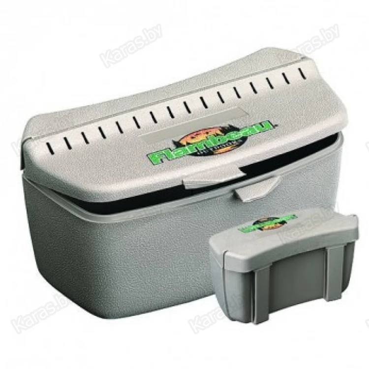 Вся наживка в коробке сохраняется свежей, так как она вентилируемая и имеет защелкивающуюся крышку. Может крепиться к ремню шириной до 50 мм.