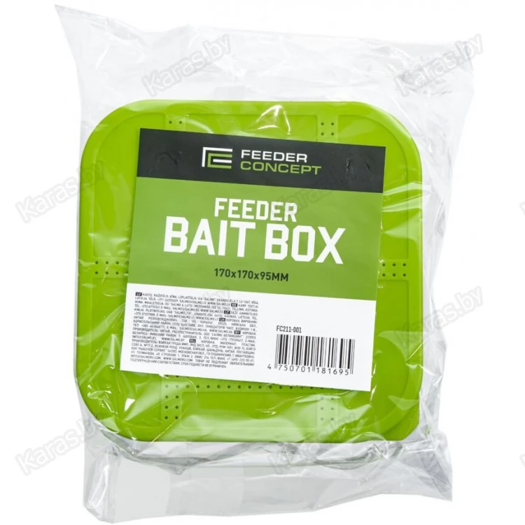 Коробка для прикормки Feeder Concept Feeder Bait Box с вентилируемой крышкой и лотком (170×170×95 мм)