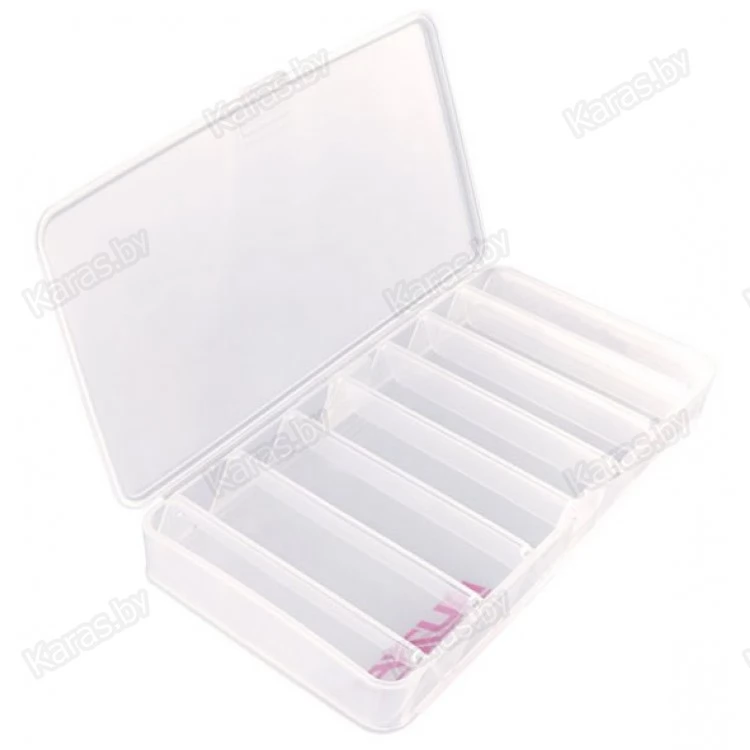 Двусторонняя коробка для хранения спиннинговых приманок из ударопрочного армированного пластика PP (полипропилен). Коробка оборудована V-образными индивидуальными отсеками с максимальным использованием полезного пространства и способствующая бережному хранению Ваших приманок длиной до 105 мм.