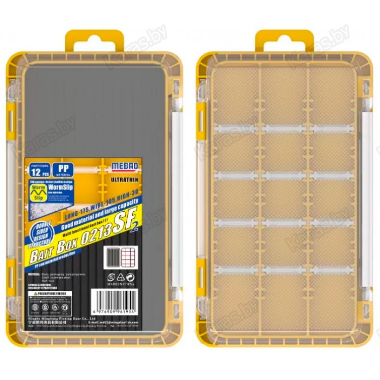 Коробка двухсторонняя Mebao 0223SF3 от компании Mebao – тонкая коробка. Отлично подойдет под хранение различных ультралайтовых приманок или миниатюрных джиг-головок. Отлично сочетается с форелевыми ящиками и без проблем помещается в верхней отсек под крышкой. Коробка сделана из прочного надежного пластика, пригодного для хранения силиконовых приманок. Крышка коробки выполнена из полупрозрачного пластика, что помогает сразу определить содержимое.