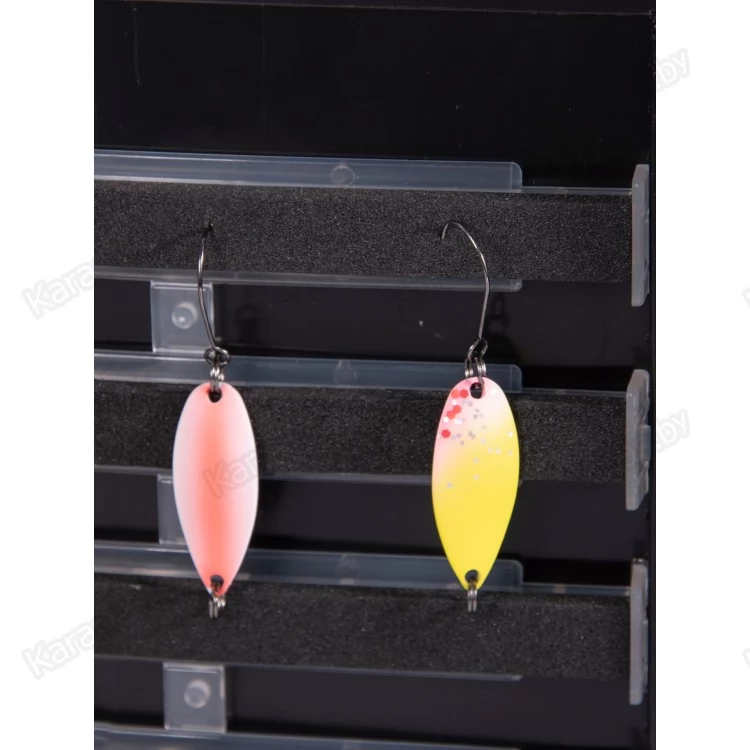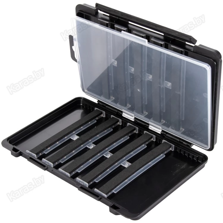 Коробка, специально разработанная для любителей ловли в стиле ультралайт, а также ловли форели на платных водоёмах. Двусторонний дизайн с центральной перегородкой делает коробку очень вместительной. Внутри коробка оснащена 10-ю съёмными поперечными перегородками со слоем пеноматериала каждая (по 5 штук в каждом отделении). Такая конструкция позволяет закалывать крючки приманок непосредственно в слой пены на перегородках, благодаря чему приманки в коробке не цепляются крючками. Это делает процесс извлечения приманок из коробки максимально быстрым и удобным. Размер коробки адаптирован для размещения в ящиках BM-5000, VS-7055N (нижнее отделение), VS-7070N (нижнее отделение), VS-7080N.