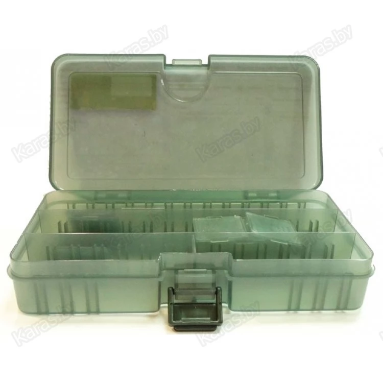 Удобная коробка для рыболовных принадлежностей. Изготовлена из прочного пластика.