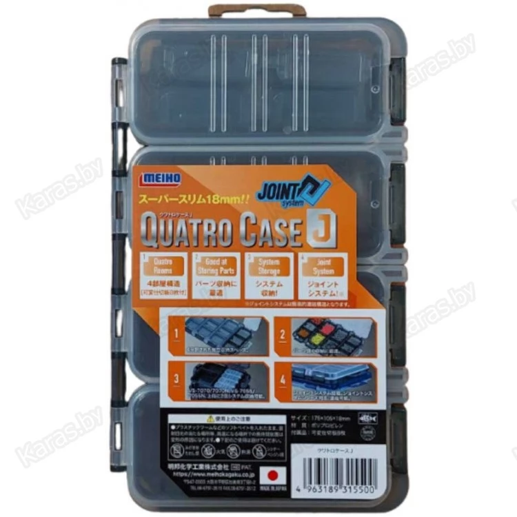 Супер новинка от Meiho! Семейство всеми любимых коробок пополнила новая модель. Meiho Quatre Case J. Идеально подойдет для хранения различной мелочевки, застежек, заводных колец, вертлюжков и тд. Имеет крышку разделённую на 4, которые можно открыть по отдельности или все вместе. Совместима для крепления со всеми коробками из этой серии от Meiho и от Thirty34Four.