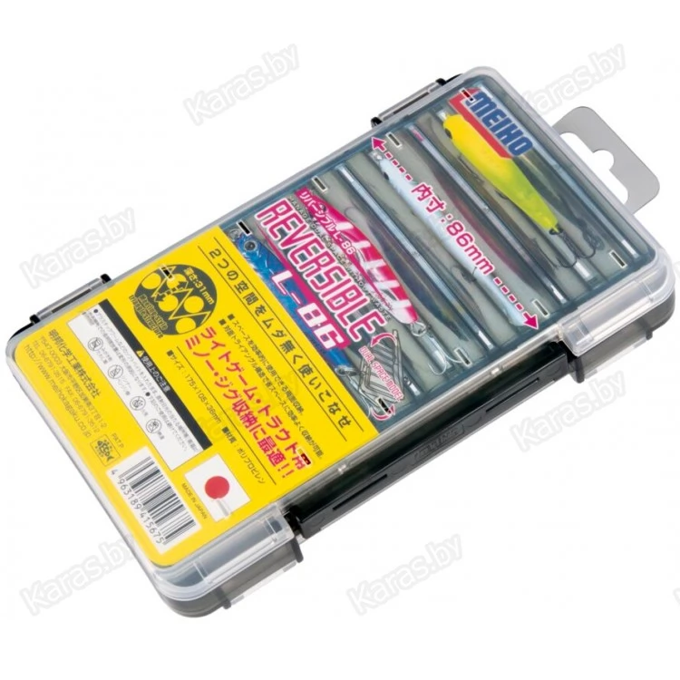 Коробка Meiho Reversible L-86 - двухсторонняя коробка для хранения воблеров Minnow, пилькеров и подобных приманок. Коробка выполнена из прочного пластика, с максимальным полезным объемом и вентиляционными отверстиями для пропускания влаги и циркуляции воздуха. Специальное расположение отсеков треугольной формы позволяет наиболее эффективно использовать их внутреннее пространство, исключая при этом контакты приманок и крючков между собой, тем самым сохраняя лакокрасочное покрытие приманок при транспортировке.