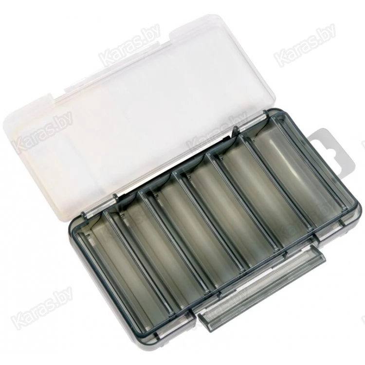 Коробка для снастей и приманок Reversible L-86 изготовлена из полипропилена, конструкция коробки простая и надежная, прозрачные крышки крепятся к основанию двумя петлями, которые не выступают за габариты корпуса и защищены от случайных повреждений.