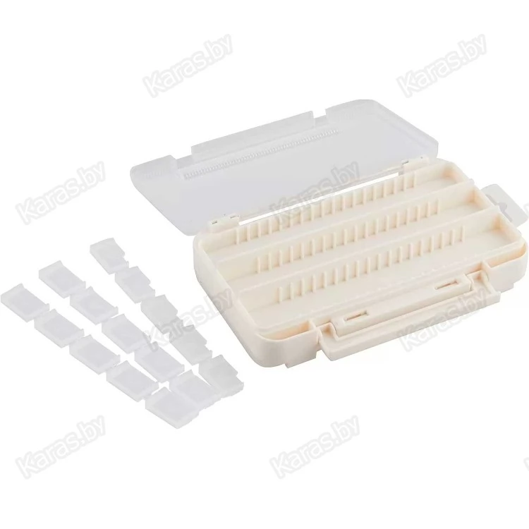 Rungun Case 1010 - усовершенствованная серия ставшей уже классикой Run Gun. Эти качественные двусторонние коробки для рыбалки отлично подходят для хранения небольших приманок самого разного типа: воблеров, блесен, джиговых приманок. Коробки изготовлены из высокопрочного, качественного пластика с прозрачными крышками и удобными застежками. Они удобно помещаются в карманы рыболовного жилета или забродной куртки. При том же размере, что и у предшественников, эта серия имеет достаточно удобную и практичную особенность. Прозрачные крышки у Rungun Case выполнены рифлеными. Rungun Case 1010 w - двусторонняя, цвет - белый. С обеих сторон отсеки для хранения приманок со вставками-разделителями из-за этого коробка стала удобнее для хранения силиконовых приманок, в том числе съедобного силикона или приманок из мягких пластиков.