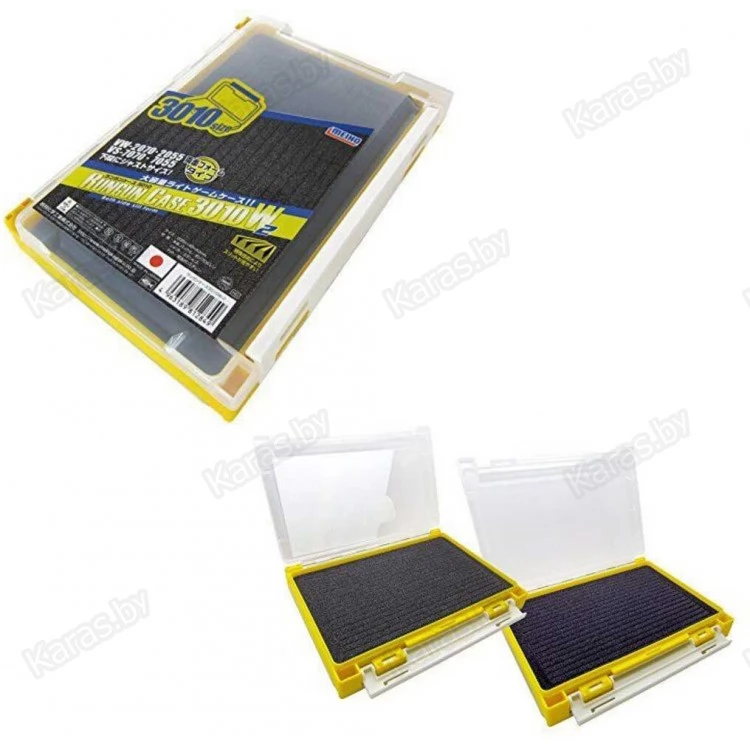 Meiho Rungun Case 3010 W-2 - коробка, у которой пористые вкладыши имеются с обеих сторон. Придётся по вкусу нахлыстовикам. Мушки и стримеры в ней будут чувствовать себя прекрасно. Любители ловли форели найдут её очень удобной для хранения блёсен и вольфрамовых джиг-головок. Опять же форелятники и поклонники микроджига, оценят её за возможность хранения небольших силиконовых приманок в оснащённом джиг-головками виде.Вылазки с этими коробками на лёд показали, что материал коробок не дубеет, защёлки работают хорошо. Блеснильщикам и мормышечникам они тоже будут кстати.