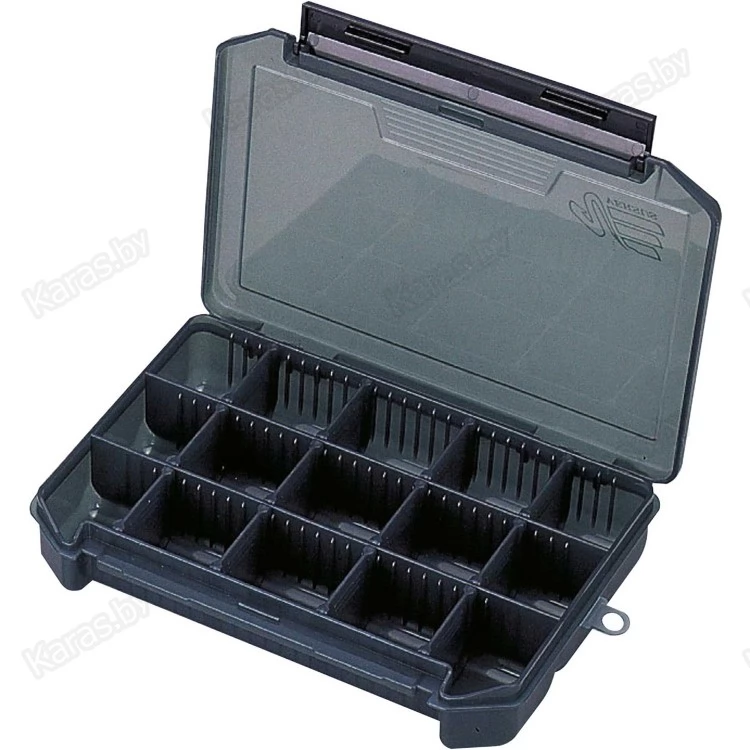 MEIHO Versus VS-3010ND — коробка имеет 3 длинных отсека, их можно разбить на 15 ячеек съемными разделителями. Шаг разделения — 3.2 мм (система MEIHO MICRO RIB SYSTEM). Внутренняя глубина 35 мм позволяет хранить не только приманки небольшой толщины, но и довольно объемные воблеры-крэнки.