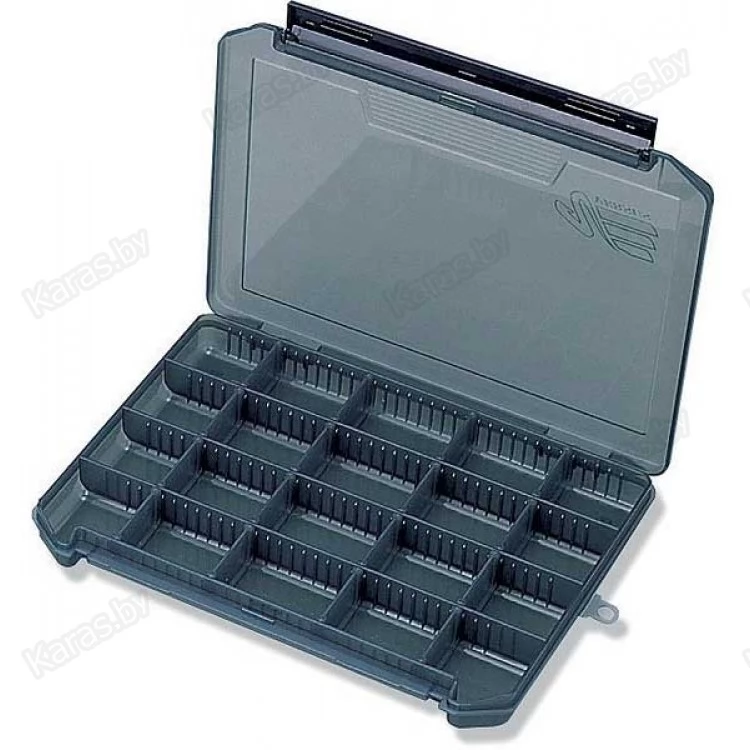 Meiho Versus VS-3020ND имеет 4 длинных отсека, их можно разделить на 20 ячеек с помощью съемных перегородок. Внутрення глубина 35 мм позволяет хранить приманки небольшой толщины, но также  поместятся и объемные воблеры-кренки.