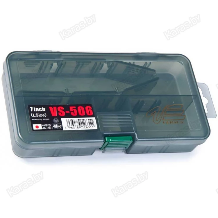 Meiho Versus VS-506-B — одна из серии рыболовных коробок из полупрозрачного темного полипропилена. Имеют простую и надежную конструкцию. Рыболовные коробки Meiho Versus представлены в нескольких размерах. Все коробки серии внутри имеют несколько отсеков, комплектуются съемными перегородками. Благодаря большому количеству перегородок и возможности их регулирования коробки Meiho Versus удобны для хранения не только воблеров, но и мелких предметов. SysteMeiho Versus — одни из самых универсальных коробок, их можно применять в самых разных областях рыбной ловли, адаптируя размер ячеек под любые нужды. Все рыболовные коробки имеют общие конструктивные особенности.