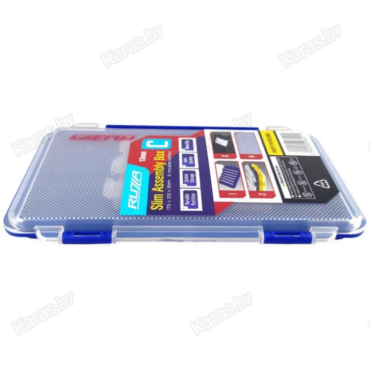 Односторонняя коробка для хранения приманок и аксессуаров из ударопрочного армированного пластика PP (полипропилен). Доступна регулировка свободного пространства посредством изменения расположения перемычек (6 шт). На внутренней стороне крышки нанесено рифление, препятствующее прилипанию мягких приманок. Коробка имеет возможность соединения с другими коробками серии посредством замков-защелок в нижней части.