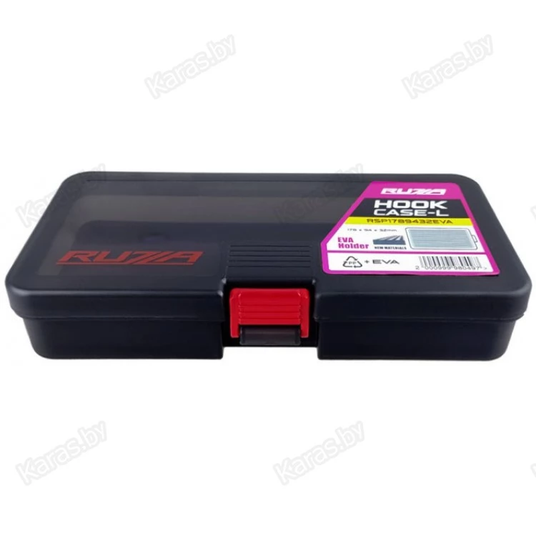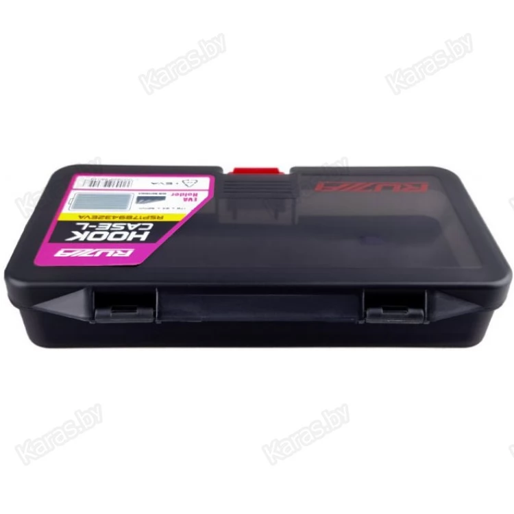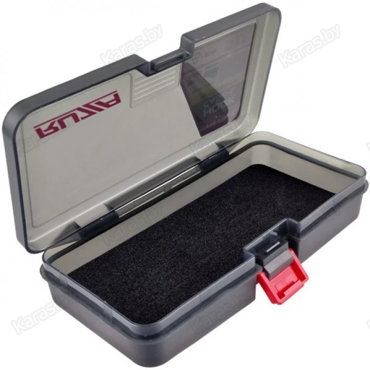 Односторонняя коробка из ударопрочного армированного пластика PP (полипропилен). Отсек снабжен плотной вспененной подложкой из EVA (этиленвинилацетат) с прорезями для надежнолго хранения крючков и некрупных приманок.