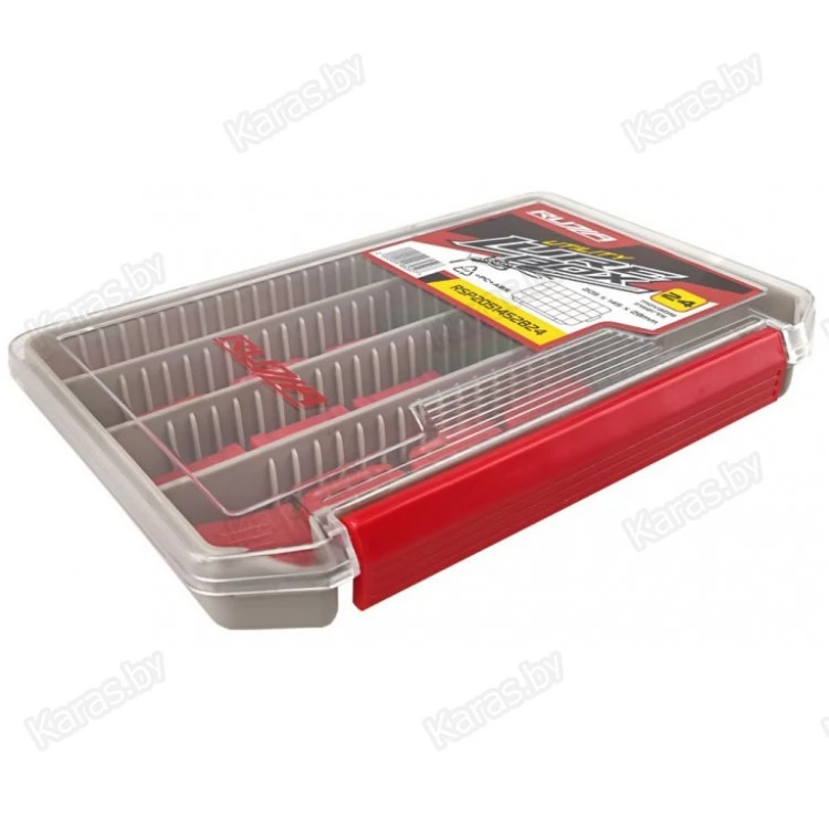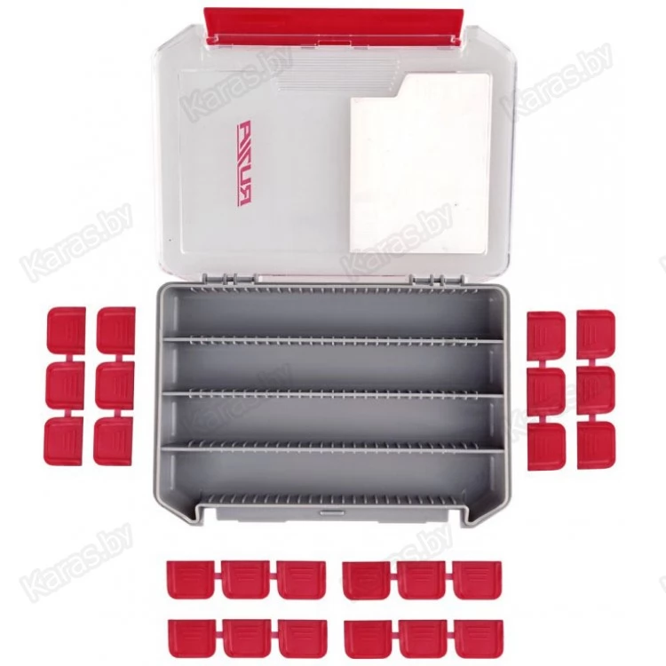 Односторонняя коробка для хранения приманок и аксессуаров из ударопрочного армированного пластика PP (полипропилен)+ABS+PC. Доступна регулировка свободного пространства посредством изменения расположения перемычек (24 шт), тем самым формируя от 4 до 28 отделений. Подвижные вставки помогут гибко менять размеры отсека под Ваши нужды и задачи.