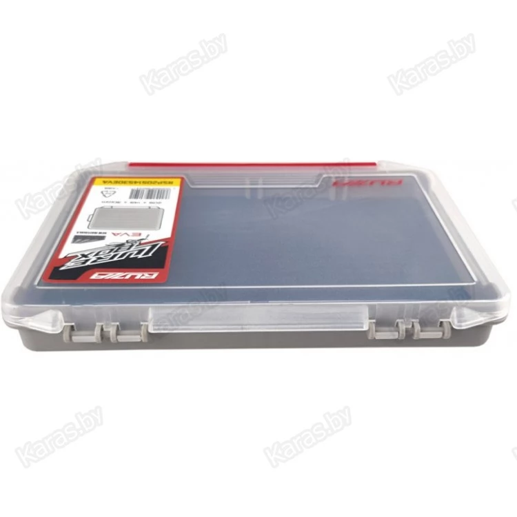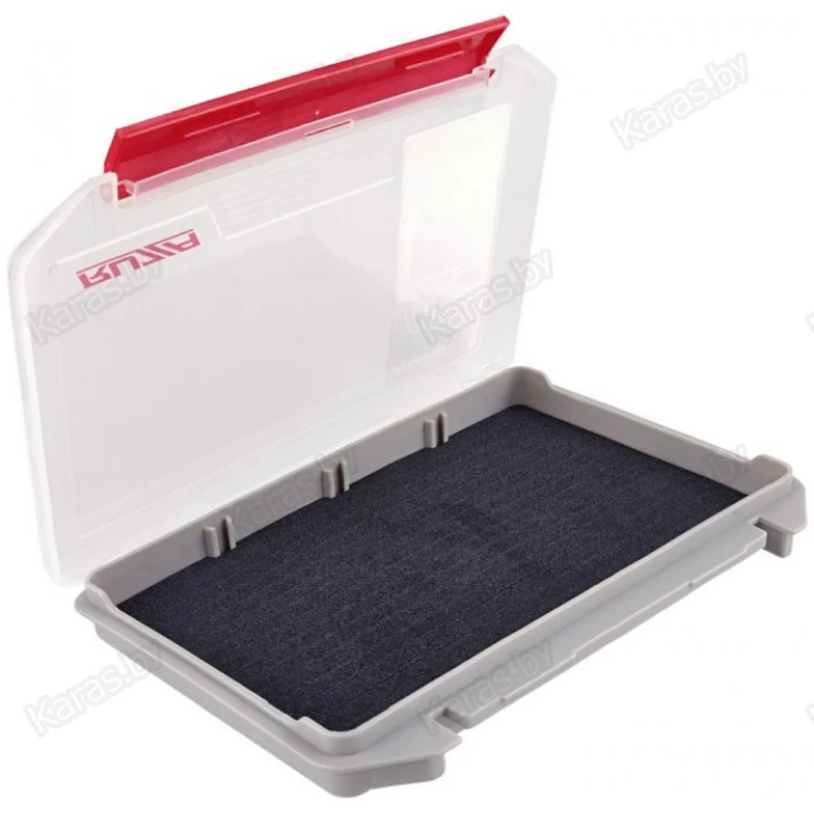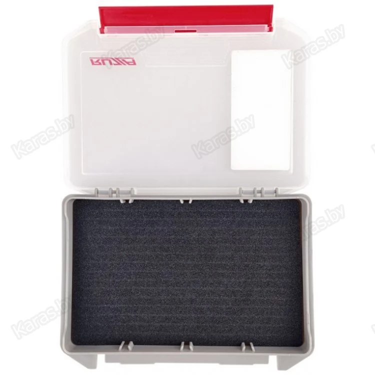 Односторонняя коробка из ударопрочного армированного пластика PP (полипропилен). Отсек снабжен плотной вспененной подложкой из EVA (этиленвинилацетат) с прорезями для надежнолго хранения крючков и некрупных приманок.