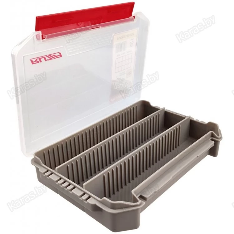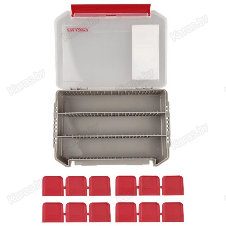 Односторонняя коробка для хранения приманок и аксессуаров из ударопрочного армированного пластика PP (полипропилен)+ABS+PC. Доступна регулировка свободного пространства посредством изменения расположения перемычек (12 шт). Подвижные вставки помогут гибко менять размеры отсека под Ваши нужды и задачи.