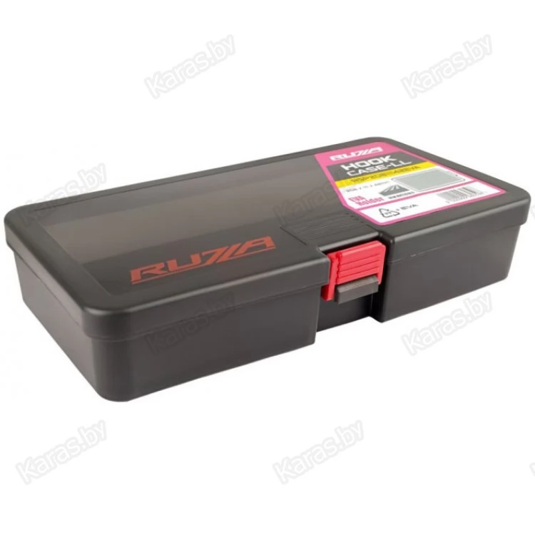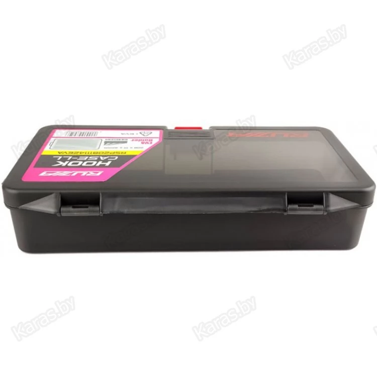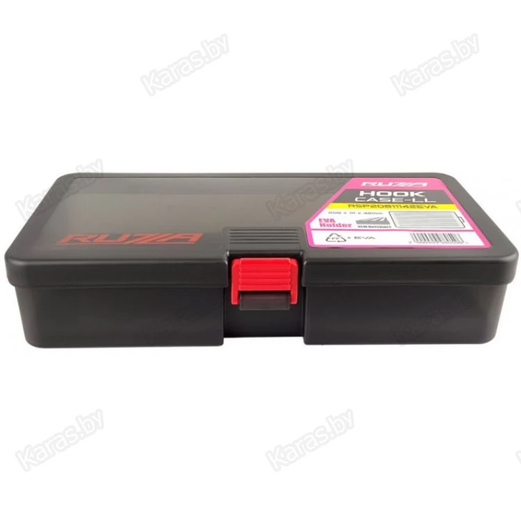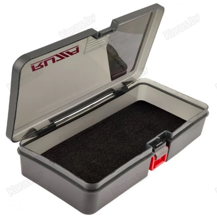 Односторонняя коробка из ударопрочного армированного пластика PP (полипропилен). Отсек снабжен плотной вспененной подложкой из EVA (этиленвинилацетат) с прорезями для надежнолго хранения крючков и некрупных приманок.