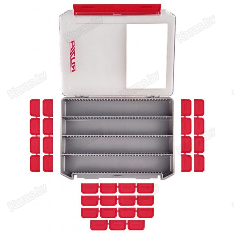 Односторонняя коробка для хранения приманок и аксессуаров из ударопрочного армированного пластика PP (полипропилен)+ABS+PC. Доступна регулировка свободного пространства посредством изменения расположения перемычек (32 шт), тем самым формируя от 4 до 36 отделений. Подвижные вставки помогут гибко менять размеры отсека под Ваши нужды и задачи.